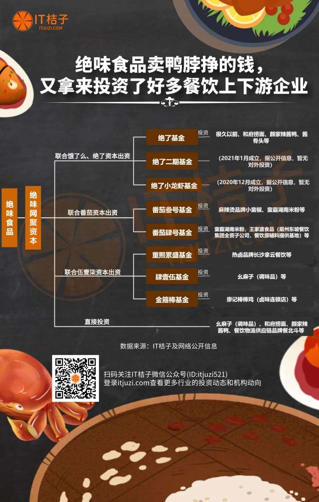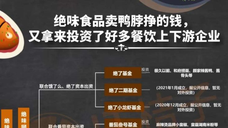 绝味食品卖鸭脖挣的钱,又拿来投资了好多餐饮上下游企业,其中和府捞面、霸蛮湖南米粉、幺麻子调味品、颜家辣酱鸭卤味品牌多次获投。