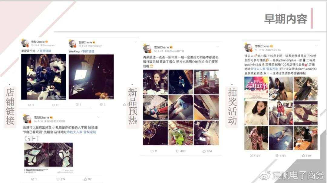为了推广店铺,雪梨在多个社交渠道注册账号,早年活跃的人人网、蘑菇街、美丽说都曾留下她的足迹。
