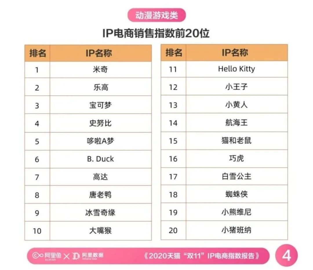 从这张图片也可以看到一个尴尬的事实,IP电商销售指数TOP20中,仅有“小猪班纳”是唯一一个国产IP。