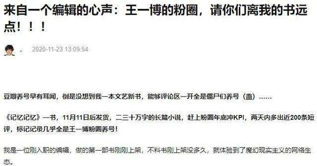 2020年11月,豆瓣这位图书编辑喊话饭圈,“离我们远一点”。