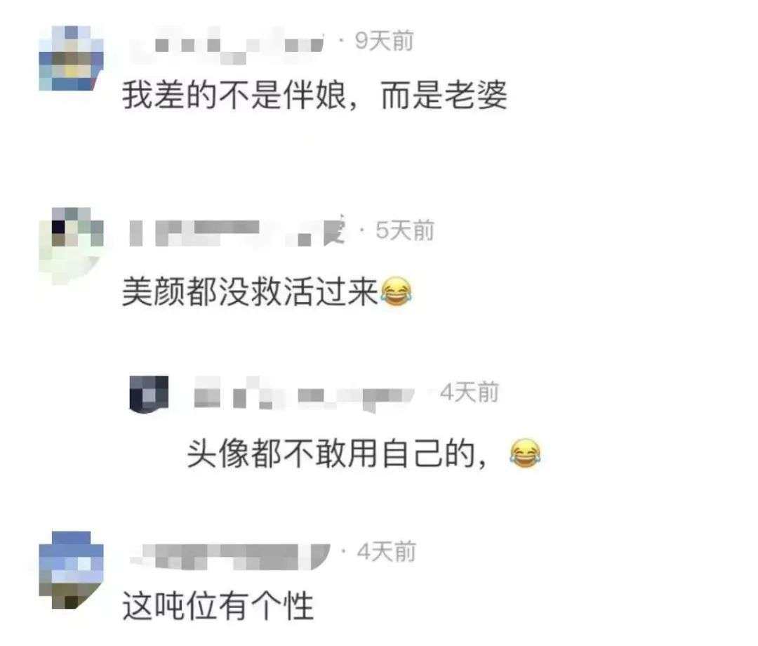 一时想不出有哪个品类的商品会比「出租伴娘」更卖力强调自己的品相一般:「长相中等」、「不好看」、「不漂亮」、「路人」、「普通」……姑娘们只差对天发下毒誓保证自己「绝不抢新娘风头」。然而话说过了也怕丢了顾客,于是转而还要再补一句: