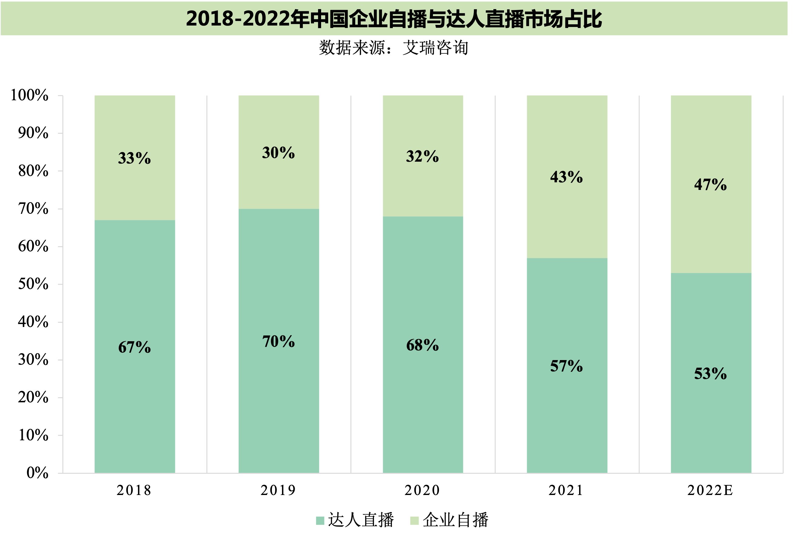 同时,品牌商家也趋于理性,从盲目追逐曝光转向理性权衡产出比,企业自播成为常态。商家会逐渐减少对头部主播的依赖,开拓强化自播渠道,将流量掌握在自己手中。艾瑞咨询预测,2023年企业自播占比将接近50%。