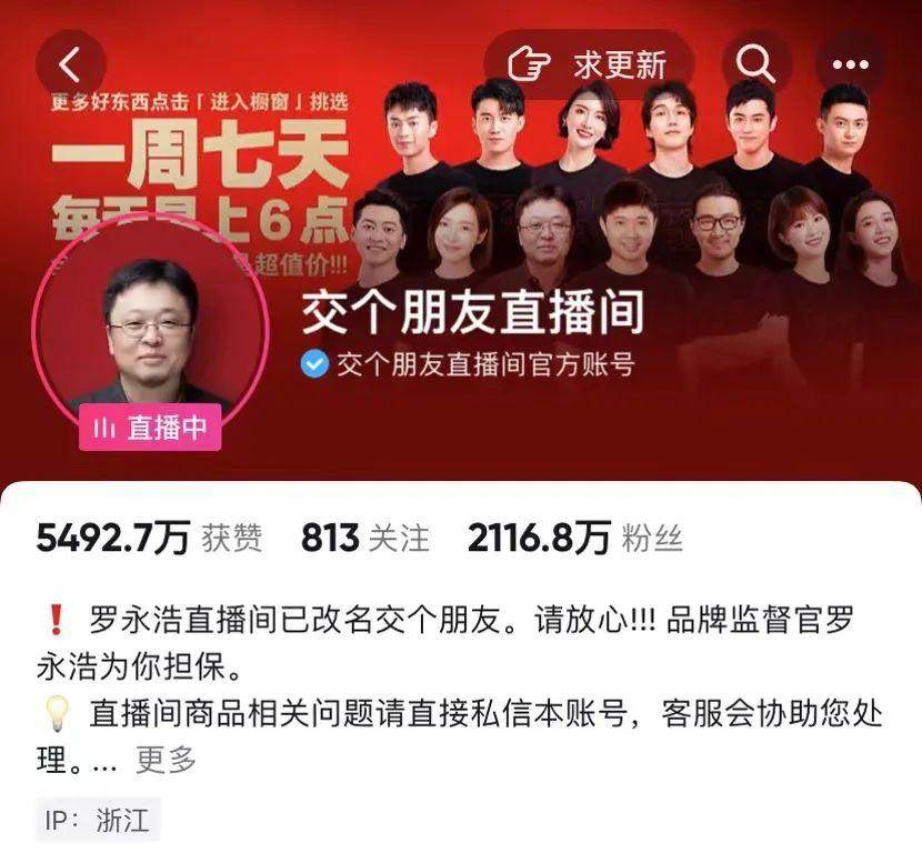 尽管从始至终,交个朋友都不想变成围绕罗永浩一个人的工作室。但问题在于,即便到了今天,交个朋友仍然面临“去罗永浩化”后遗症。当初交个朋友凭借罗永浩IP成为抖音头部直播平台,然而弱化罗永浩个人IP后,交个朋友的直播转化效率明显弱于其他同行。