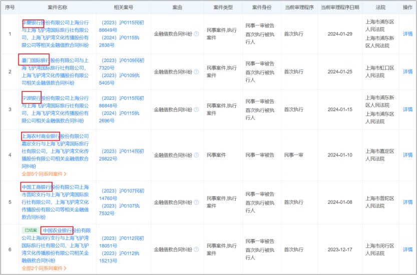 合作伙伴究竟有没有欠驴妈妈20亿,这很难验证,但锌财经通过天眼查发现,包括华夏银行、宁波银行、工商银行、农业银行在内,已经有10家银行向“上海飞驴湾文化传播股份有限公司”发起诉讼,并申请财产冻结、强制执行等。