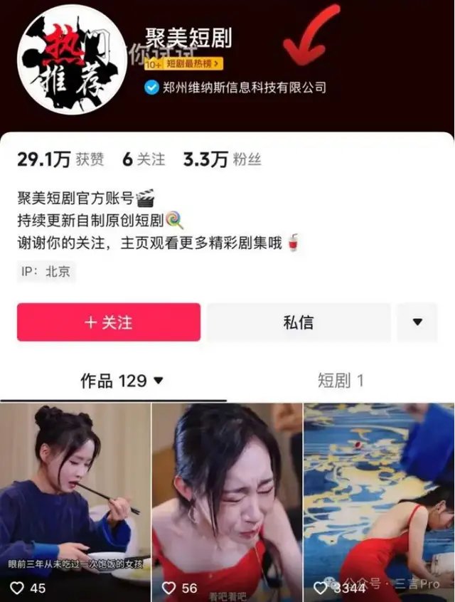 不过,这些作品大多只有几十或者几百点赞量,点赞量最多的是1.2万。该账号目前也只有3.3万粉丝,累计获赞量只有29.1万。以此来看,陈欧的短剧生意,做得并不出色。