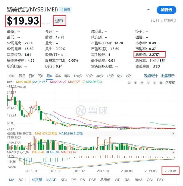 尽管陈欧迅速回应并砍掉了第三方平台上的奢侈品业务,但聚美优品的业绩依然一落千丈。三年之后,聚美优品的市值仅存3亿多美元,市值蒸发将近 95%。