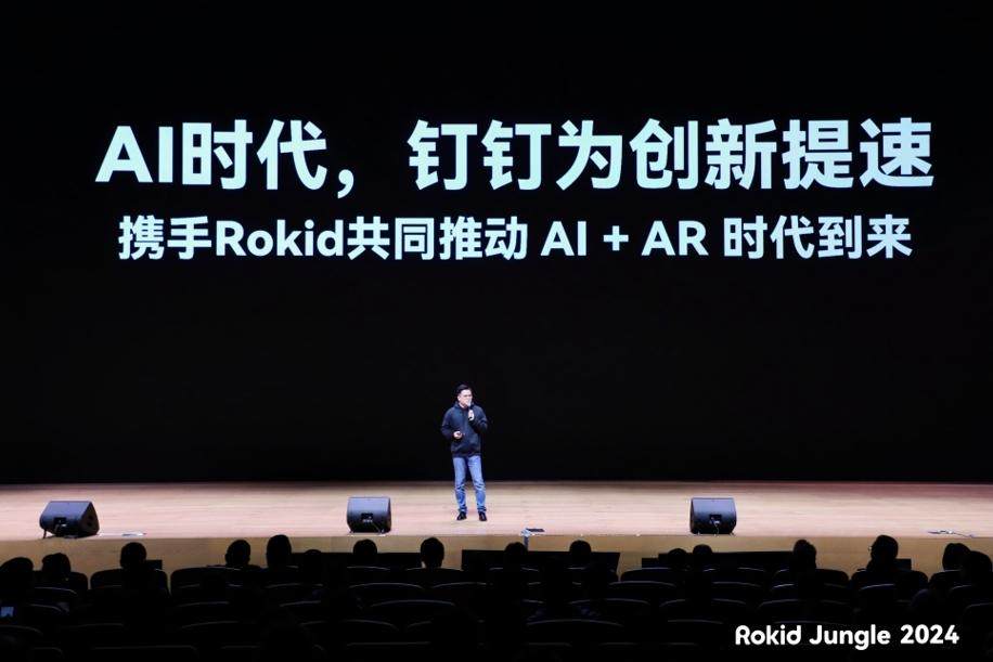 在此次发布会上,Rokid邀请了众多合作伙伴共同探讨他们在AR领域的创新理念与实践。特别是在办公场景中,Rokid携手钉钉探索未来AR办公的新模式。