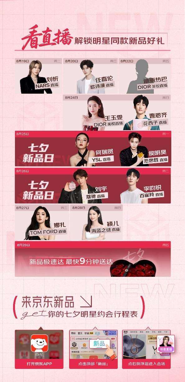 即日起至8月29日,打开京东APP点击顶部“新品”频道,即可解锁海量明星同款新品,还能一键预约林允、文淇、杨紫、赵今麦七夕祝福来电。在8月29日七夕节当天下单,还可享受“新品最快9分钟送达”服务,京东以极致物流为浪漫时刻保驾护航。