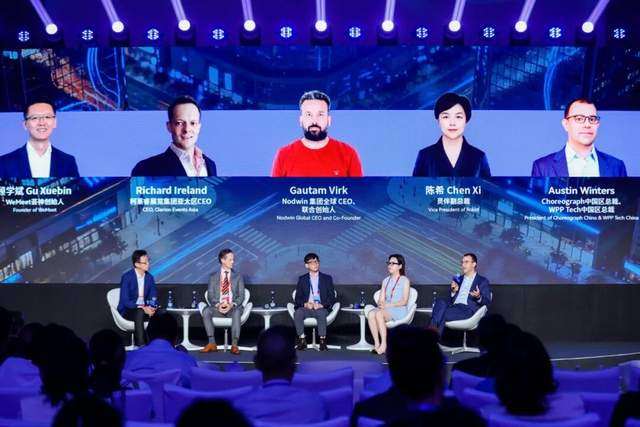 “涌现”时刻,我们在嘉宾的演讲和WeMeet创始人兼CEO顾学斌主持的圆桌对话中,看到了人工智能为营销及会展带来的变革与机遇。关于AI时代的营销及预算转移,蚂蚁集团数字支付线下场景部总经理金子南、Rokid副总裁陈希和WPP Tech中国区总裁Austin Winters,从支付场景、沉浸式体验和数字化营销等领域、视角带来了他们的洞见。针对AI时代及营销变革下的会展应对,英富曼亚洲区营销和数字化副总裁肖穆,柯莱睿展览集团亚太区总裁 RichardIreland,Nodwin集团全球CEO、联合创始人Gautam Virk,从专业会展主办和科技企业主办的不同视角分享了他们的实践与思考。