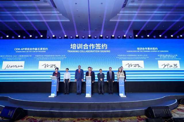 中国贸促会培训中心与IAEE签订了注册会展经理高级项目合作,并与全球数智会展创新中心签订了未来五年培训项目优先落户杭州的合作框架,在杭州开启了数智会展人才培养新尝试。