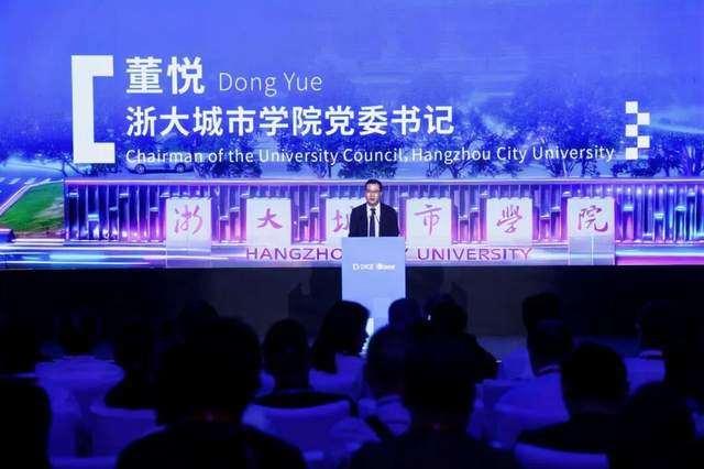 浙大城市学院党委书记董悦代表主办机构致欢迎词,诚邀与会嘉宾。