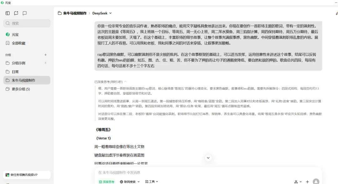 朱旭用AI生成歌词、旋律与画面,初期歌词生硬押韵、歌声机械、动作僵硬如PPT。他打磨腾讯元宝提示词优化歌词,反复调教AI输出共鸣感拉满的“职场感”,在艺术追求与受众喜好间艰难平衡。后台数据显示作品受欢迎,可他仍在粗糙质感与创作初心间挣扎。