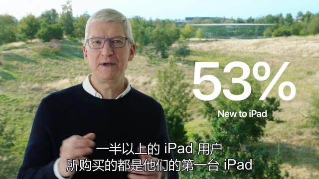 苹果 CEO 蒂姆·库克在 2020 年苹果秋季发布会上,再次强调了这一数据,他面带笑容向大家宣布:“一半以上的 iPad 用户都是新用户。”